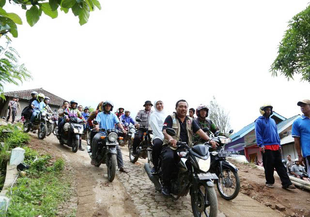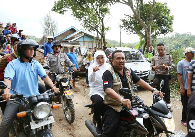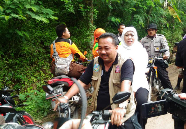 GALERI: Kunjungi Longsor, Mensos Khofifah Naik Motor