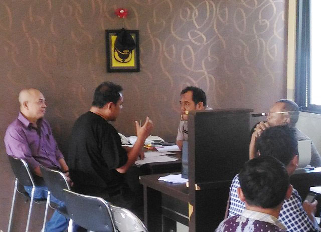 Darso -- sapaan Sudarsono Arief Bakuama -- datang ke Sentra Pelayanan Kepolisian Terpadu (SPKT) Mapolda Jatim, Jl A Yani Surabaya, Kamis (15/6) sekitar pukul 13.30 WIB. Kehadirannya ditemani pengacara Rakhmat Siregar.
