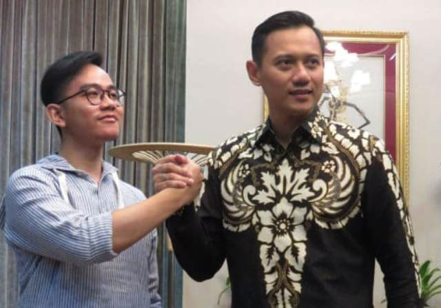 Mengetahui AHY datang ke Istana Negara dan tengah berbincang dengan ayahnya, putra sulung Presiden Jokowi, Gibran Rakabuming yang mengenakan pakaian casual meminta izin untuk bergabung.