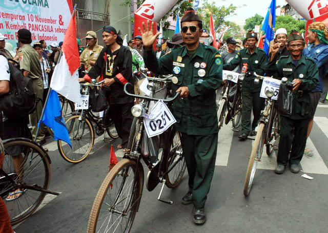 Pidato Bung Tomo, penyulut perlawanan arek-arek Surabaya 68 tahun silam, kembali diputar saat acara Napak Tilas Resolusi Jihad NU, 24 November 2013 di halaman Gedung PCNU Surabaya. Start dari Ponpes Tebuireng Jombang, diikuti ribuan peserta dengan sepeda plus dandanan tempoe doloe.