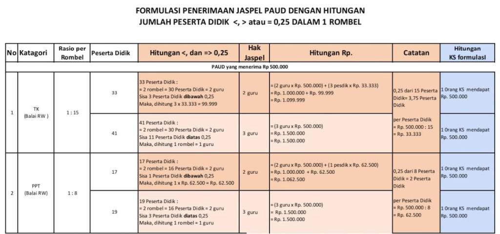 JASA PELAYANAN: Uang Jaspel tenaga pendidikan PAUD akan diberikan setiap bulan. | Tabel: Pemkot Surabaya JASA PELAYANAN: Uang Jaspel tenaga pendidikan PAUD akan diberikan setiap bulan. | Tabel: Pemkot Surabaya