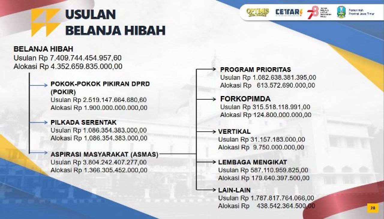 HIBAH: Usulan belanja hibah yang tertuang dalam KUA-PPAS APBD Jatim 2024. | Sumber: KUA-PPAS