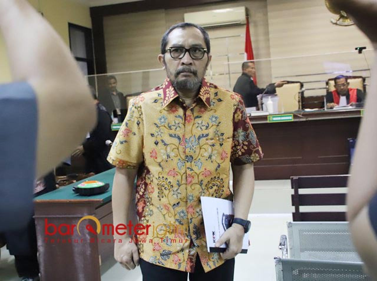 MURUNG: Sahat Simandjuntak terlihat murung usai JPU KPK tetap pada tuntutannya. | Foto: Barometerjatim.com/RQ