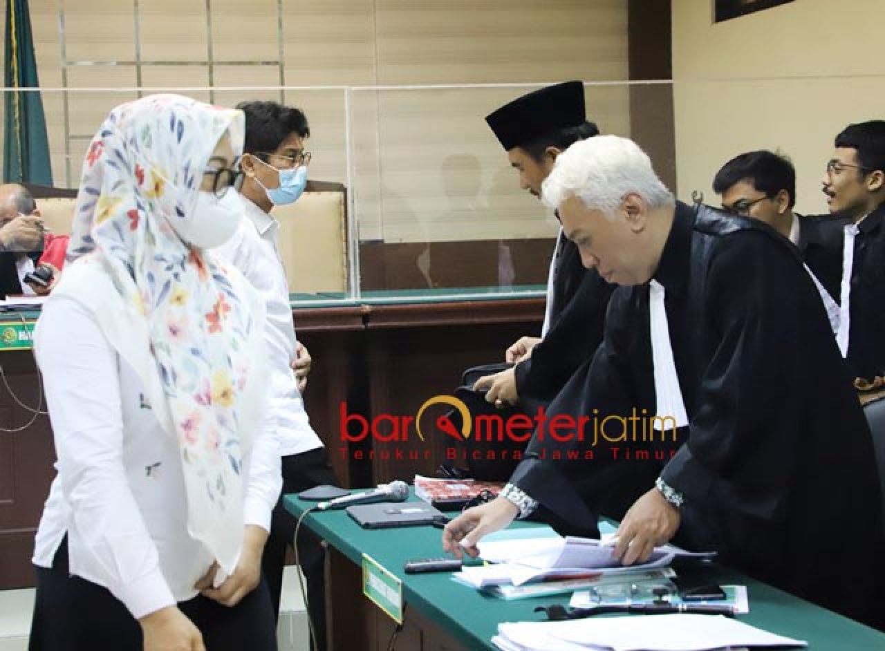 KONSULTASI: Terdakwa Saiful Rachman dan Eny Rustiana konsultasi dengan PH. | Foto: Barometerjatim.com/RQ