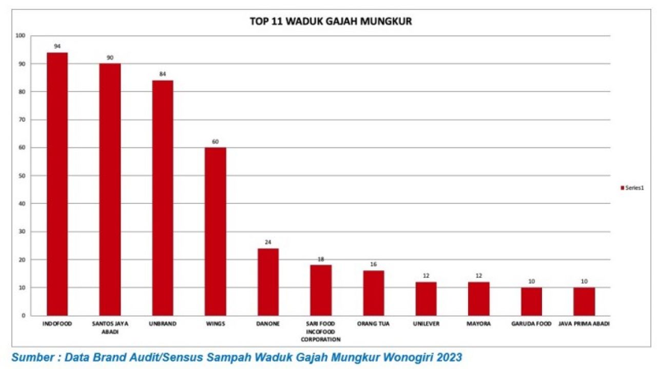 PENCEMAR: 11 top polluter pencemar plastik di kawasan wisata Waduk Gajah Mungkur. | Foto: IST