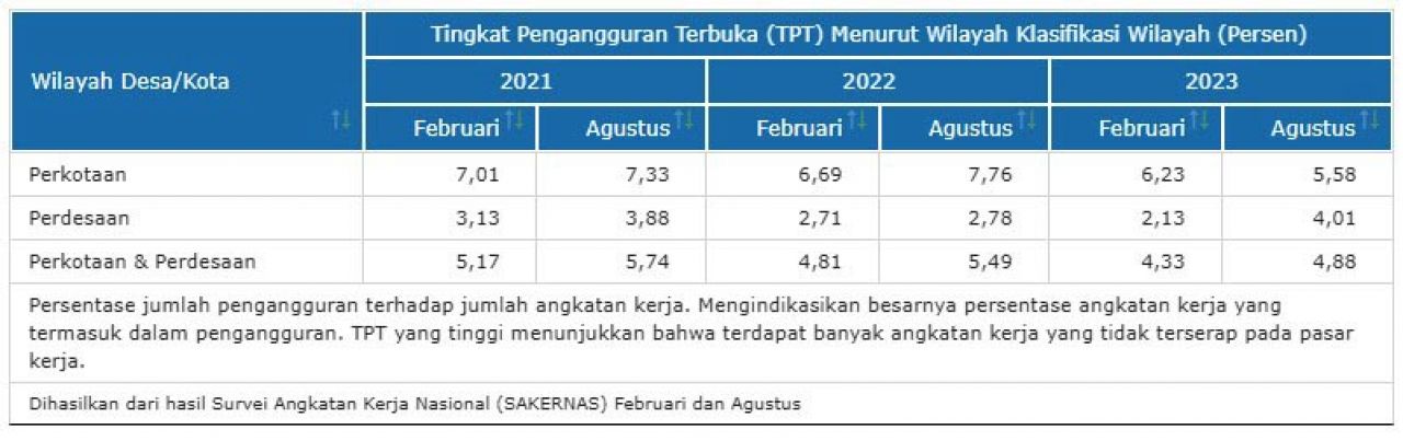 Bagaimana dengan TPT berdasarkan kabupaten/kota? Kabupaten Sidoarjo yang dipimpin Bupati Muhdlor Ali masih menempati posisi teratas dari 38 kabupaten/kota di Jatim dengan TPT terbanyak 8,05% atau turun dari 2022 sebanyak 8,80%.