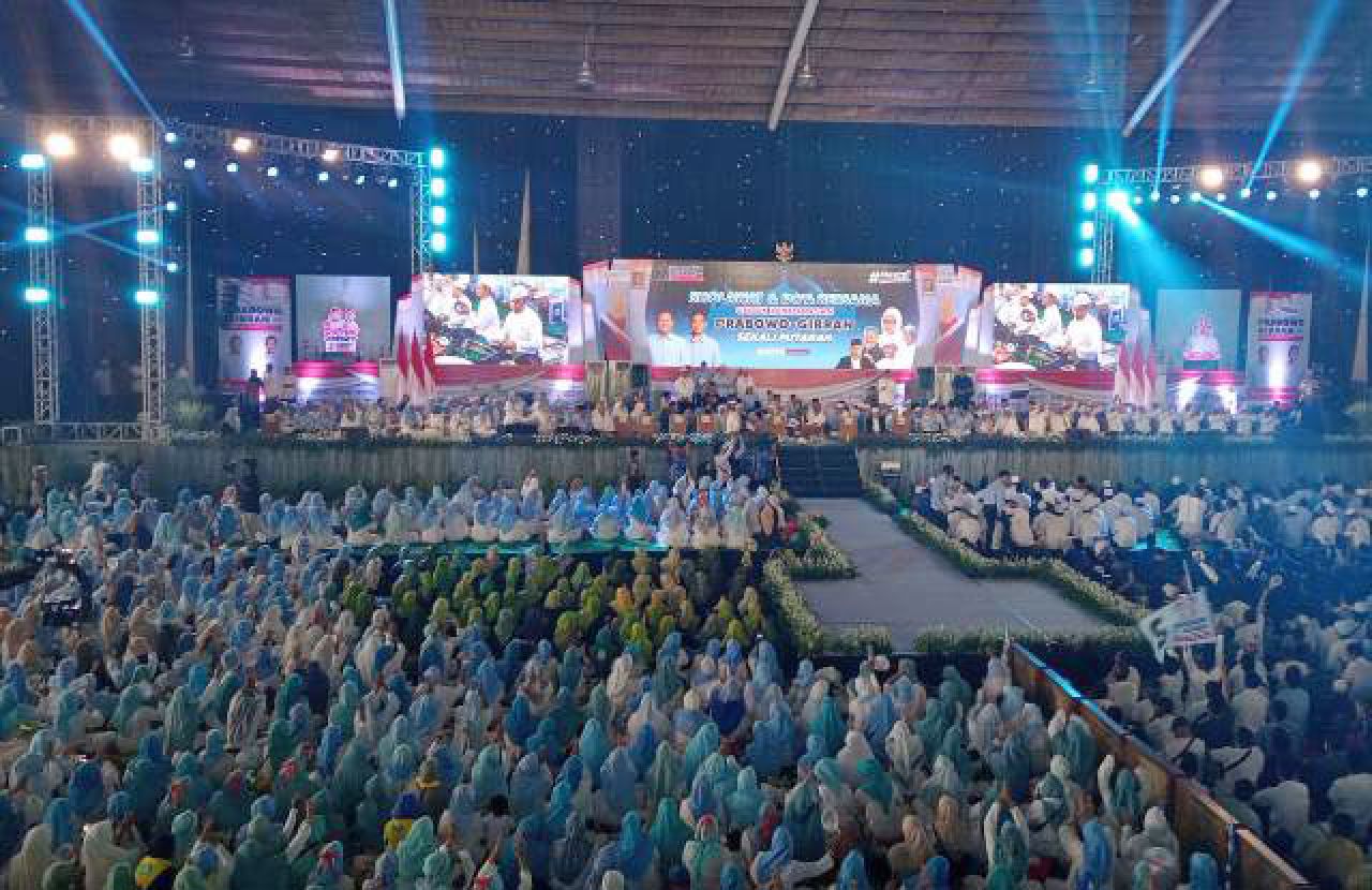DOA BERSAMA: Shalawat dan doa bersama untuk kemenangan Prabowo-Gibran satu putaran di Jatim Expo Surabaya. | Foto: IST