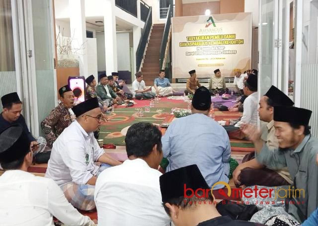 Mereka sepakat mengakhiri gegeran (beda pilihan) menjadi gergeran (gembira bersama) lewat acara bertajuk Tasyakuran Pemilu Damai dan Asparagus Kembali ke Khittah.