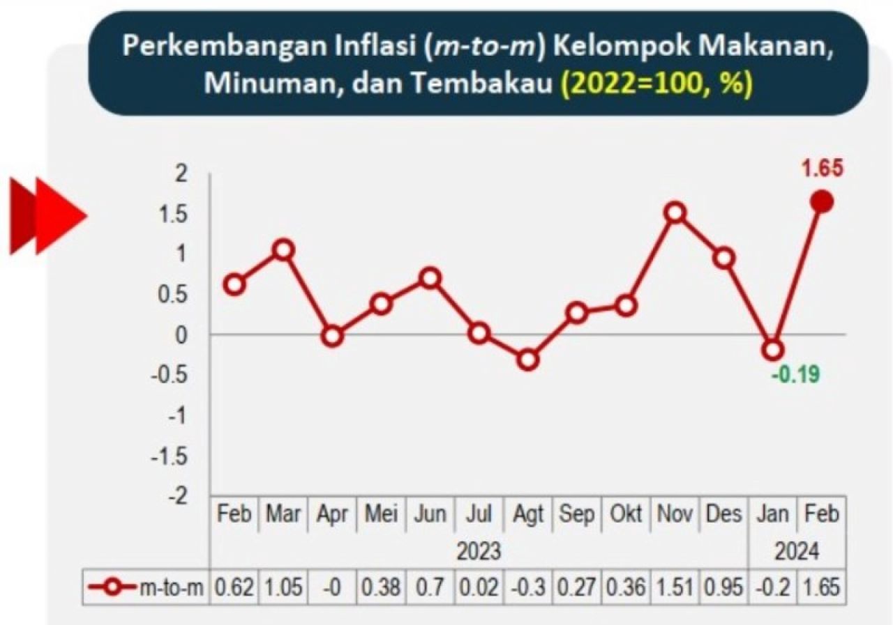 Kemudian kalau dilihat dari komoditas, beber Zulkipli, beras memiliki andil tinggi terhadap inflasi Februari 2024. Selain itu, cabai merah juga terlihat mengalami kenaikan secara m-to-m.