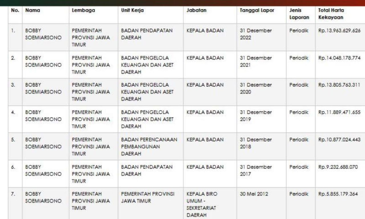 HARTA BOBBY: Inilah pergerakan harta kekayaan Bobby Soemiarsono sejak jadi Kabiro Umum. | Foto: LHKPN
