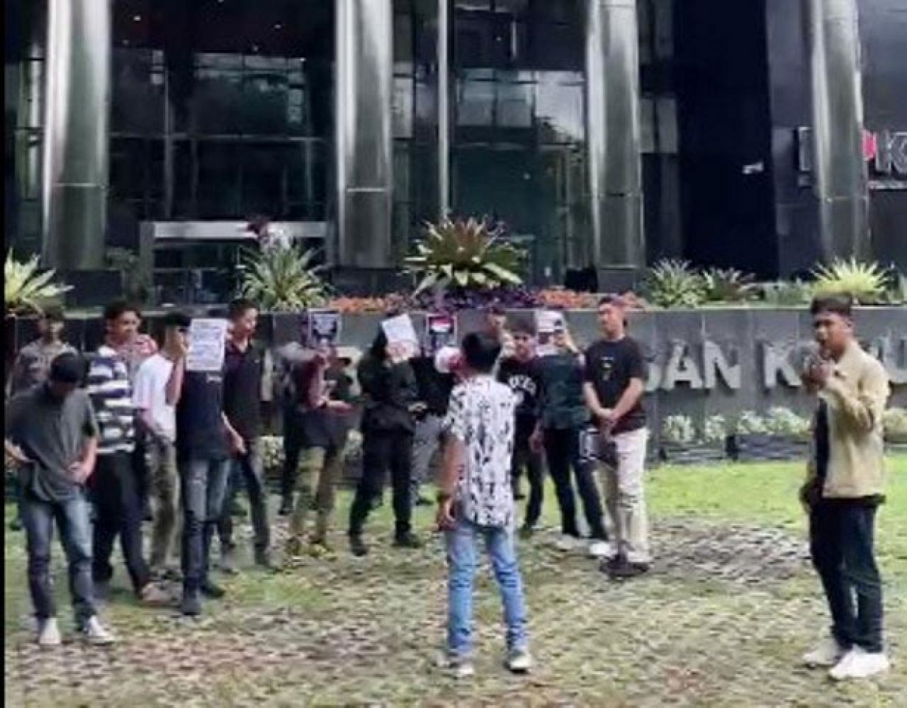 AKSI DI MERAH PUTIH: Aktivis juga menggelar aksi terkait LHKPN Adhy Karyono di Gedung KPK. | Foto: Barometerjatim.com/RQ