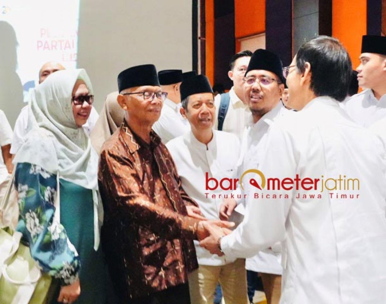 SAMBUTAN HANGAT: KH Anwar Iskandar disambut hangat pengurus dan Caleg terpilih Gerindra Jatim. | Foto: Barometerjatim.com/ROY