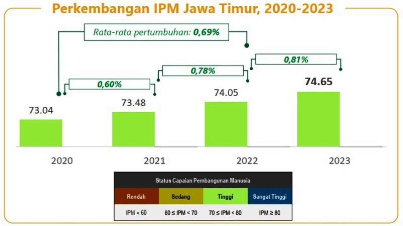 MEMBAIK: IPM Jatim 74,65Þngan peningkatan rata-rata 0,73Úri tahun sebelumnya. | Sumber Data: BPS