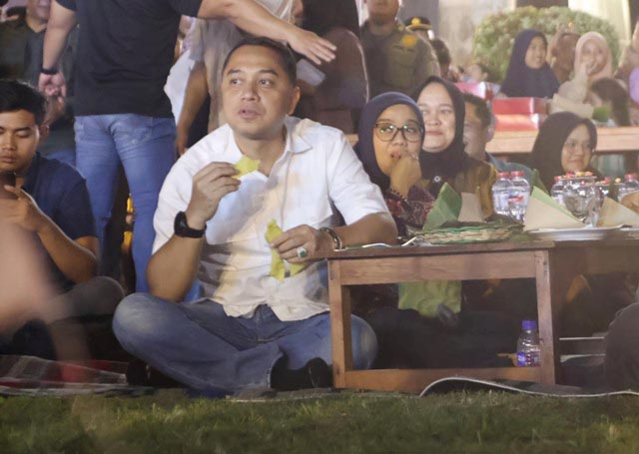 Sabtu (11/5/2024), Wali Kota Surabaya, Eri Cahyadi bersama keluarga turut hadir dalam Night at The Museum. Dia bahkan tak canggung duduk lesehan membaur dengan pengunjung lainnya, sembari menikmati sajian kuliner tempo dulu khas Surabaya.