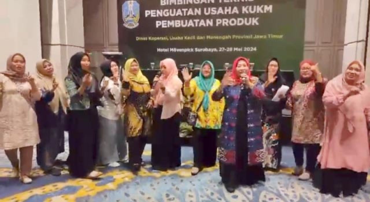 JOGET KAMPANYEKAN KHOFIFAH: Bimtek Dinkop UKM Jatim jadi ajang dukung Khofifah di Pilgub 2024. | Foto: IST