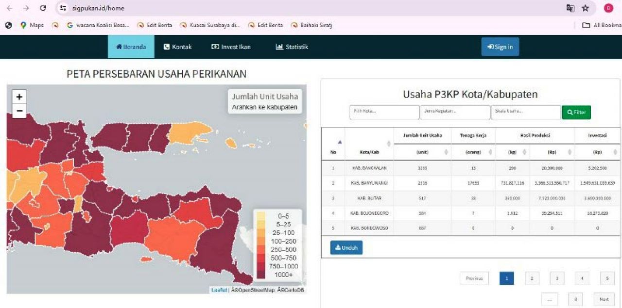 SURABAYA | Barometer Jatim – Dinas Kelautan dan Perikanan (DKP) Jatim terus mengembangkan Sistem Informasi Geografis Pelaku Usaha Perikanan (Sigpukan) yang merupakan database Usaha Mikro Kecil Menengah (UMKM) dan Kelompok Pengolahan dan Pemasaran Hasil Perikanan (Poklahsar).