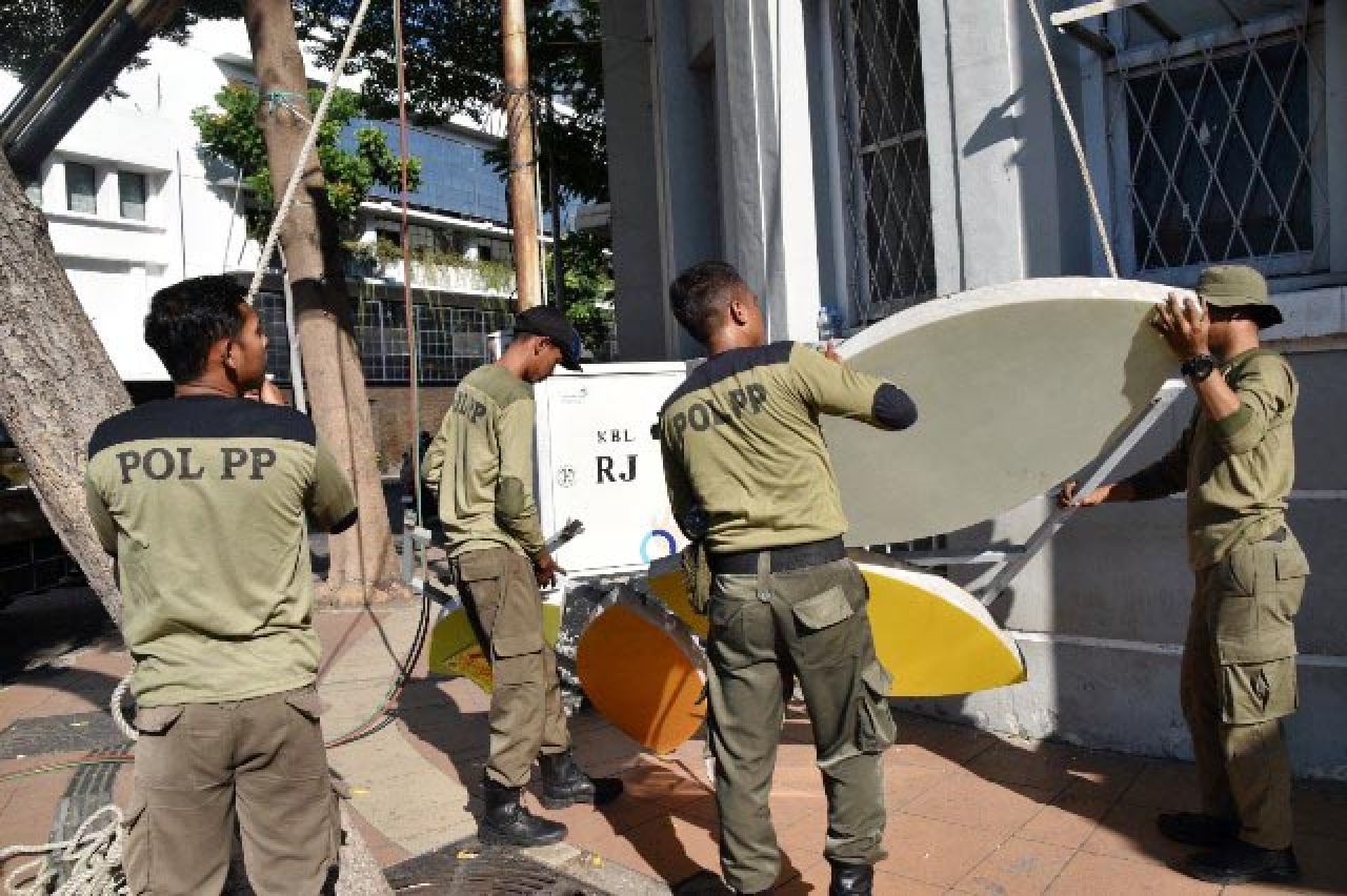 TIDAK TEGAS: Satpol PP Surabaya masif tertiban reklame tak berizin. | Foto: Barometerjatim.com/HPS