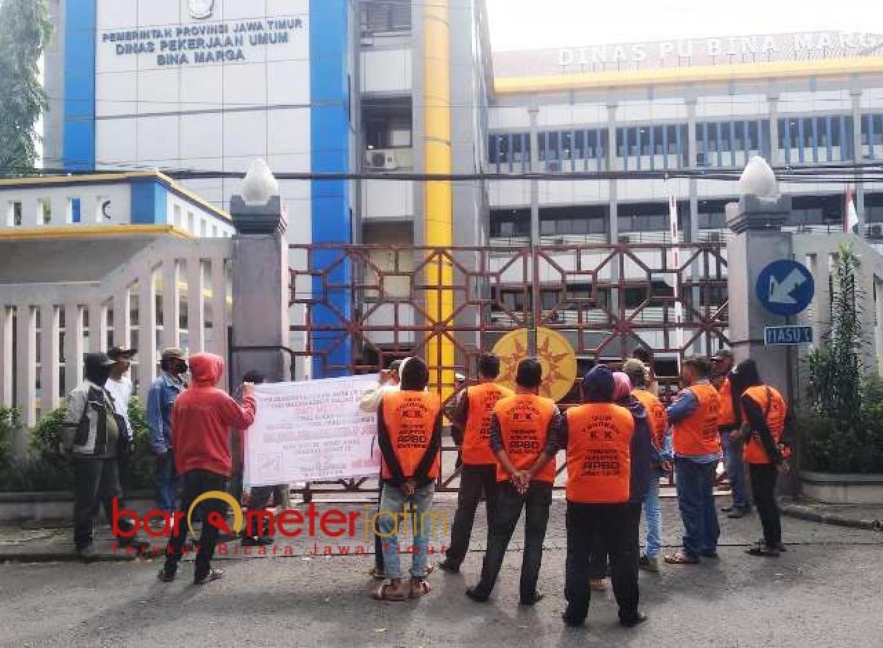 DEMO: Massa Jatim One gelar aksi di depan kantor Dinas PU Bina Marga. | Foto: Brometerjatim.com/ICAL