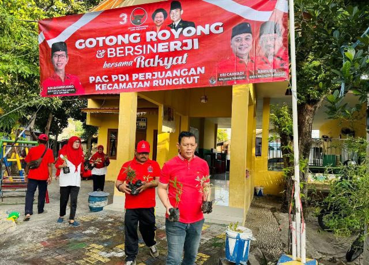 “Setiap hari Minggu, nanti bergiliran kerja bakti dilakukan di kampung-kampung yang lain. Kader-kader PDIP bersama warga masyarakat bersih-bersih lingkungan dan pembenahan kampung. Kegiatan ini sekaligus menyerap aspirasi masyarakat bagi pemerintahan Wali Kota Eri Cahyadi-Wakil Wali Kota Armuji,” katanya.
