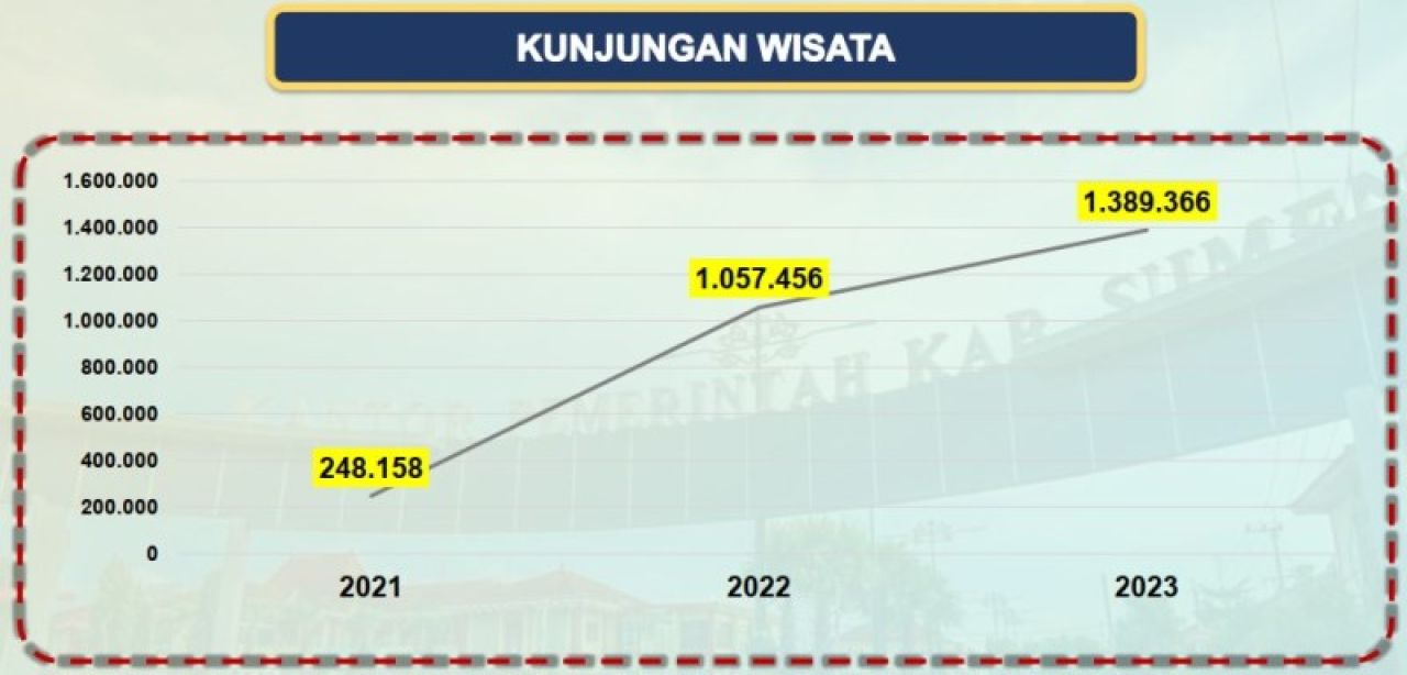 “Jika di 2021 tercatat jumlah kunjungan wisata sebanyak 248.158 maka di 2023 meningkat menjadi 1.388.922, baik wisatawan mancanegara maupun nusantara dengan penyumbang terbesar di 2023 berasal dari kegiatan event yaitu sebanyak 346.202 pengunjung,” paparnya.