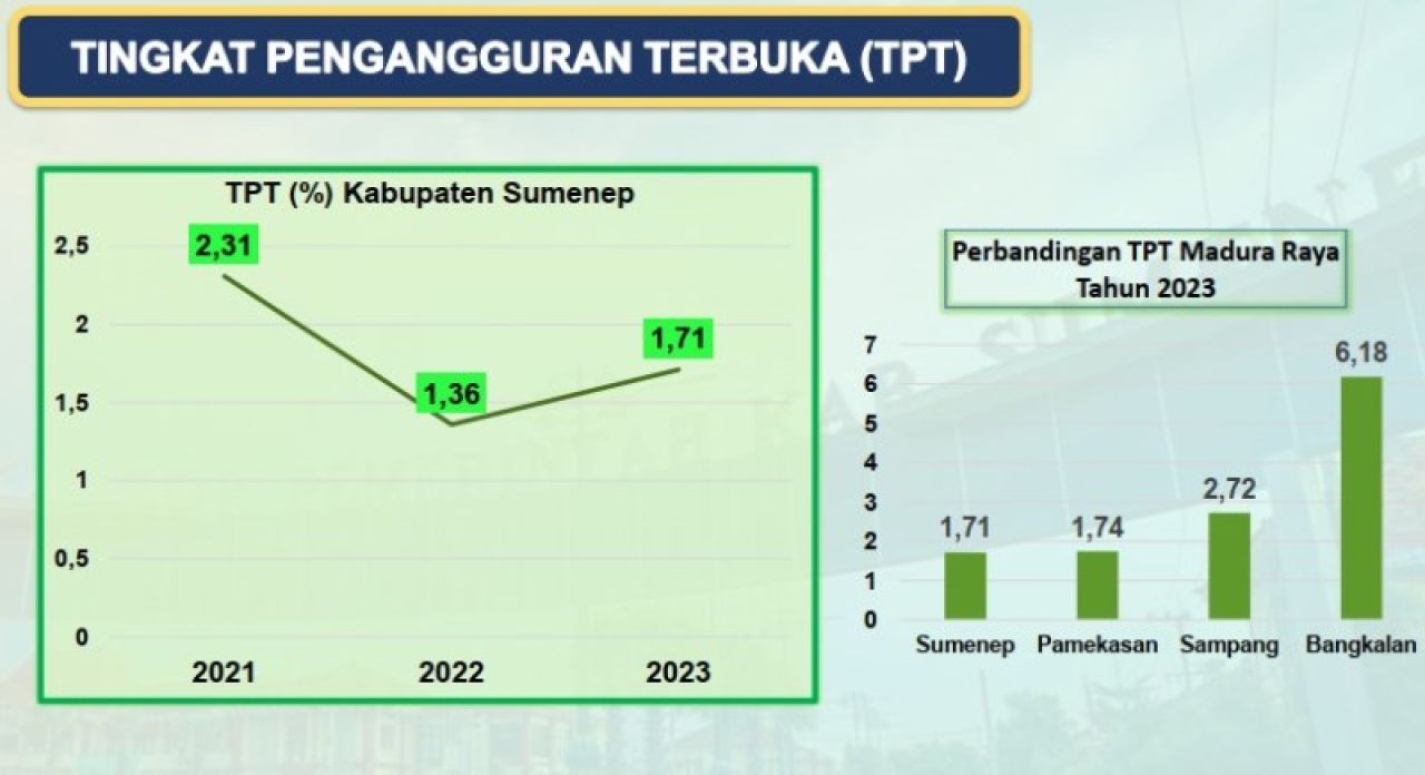 TERENDAH: Tingkat Pengangguran Terbuka (TPT) Kabupaten Sumenep terendah di wilayah Madura. | Data: BPS