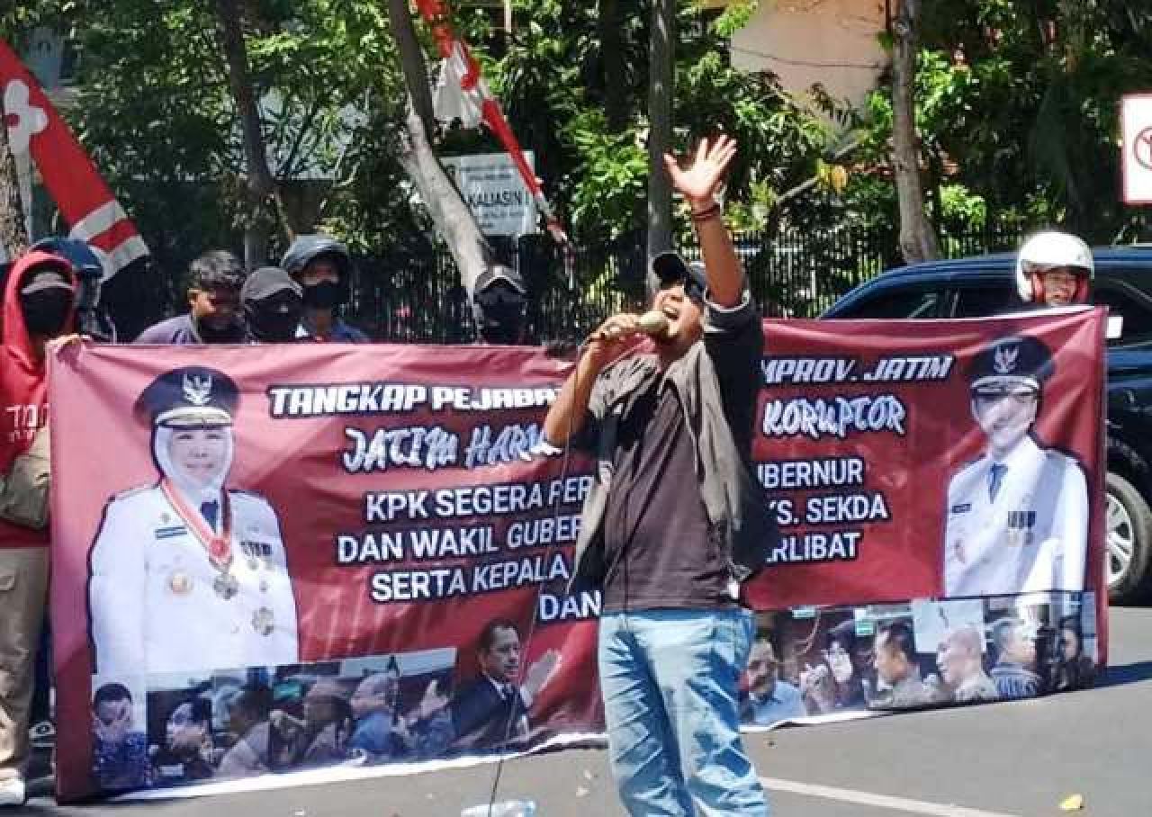 “Segera tangkap eks Gubernur Jatim berserta wakilnya, Sekda, dan seluruh kepala dinas di Pemprov Jatim karena dana hibah banyak dikorupsi,” lantangnya.{*}