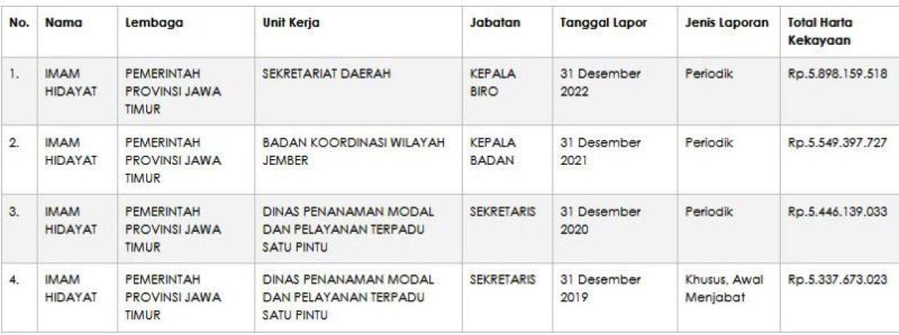 RP 5,8 MILIAR: LHKPN Imam Hidayat sejak menjadi sekretaris di Dinas Penanaman Modal Pemprov Jatim. | Foto: LHKPN
